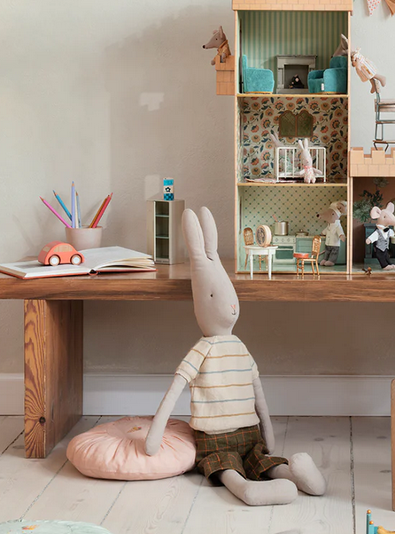 Hurmaava pupupoika ruskeissa ruutuhousuissaan ja raidallisessa neuleessaan on valmis leikkeihin.