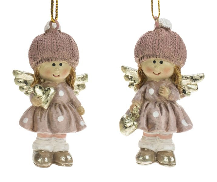 Enkeli vaaleanpunainen kultaisilla siivillä 5cm