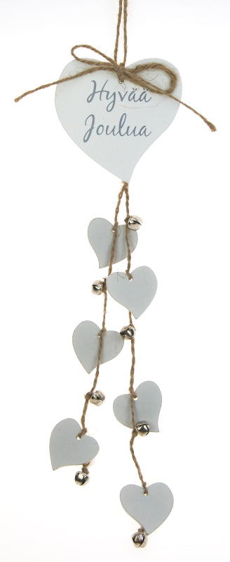 Hyvää Joulua sydän puukoriste kulkusilla Weiste