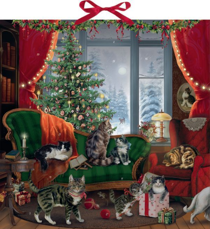 Joulukalenteri Cats at the Window. Joulutunnelmaa kissaystäville.