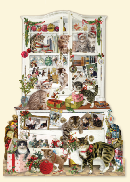 Joulukalenteri "Kissojen adventin aika" on täynnä veikeitä ja vallattomia kissoja jouluisessa ympäristössä.