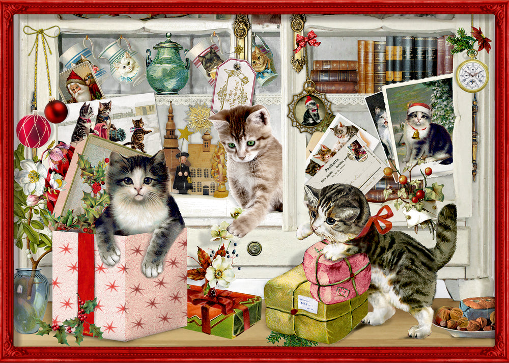 Ihana A4-kokoinen kissajoulukalenteri on todellinen kissojen ystävän unelma kalenteri joulun odotukseen.