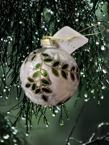 Joulukuusenkoriste Lasipallo valkoinen vihreät lehtikoristeet Weiste