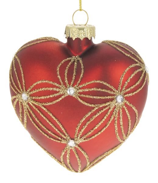 Joulukuusenkoriste Sydän punainen kultakimalteella 8cm