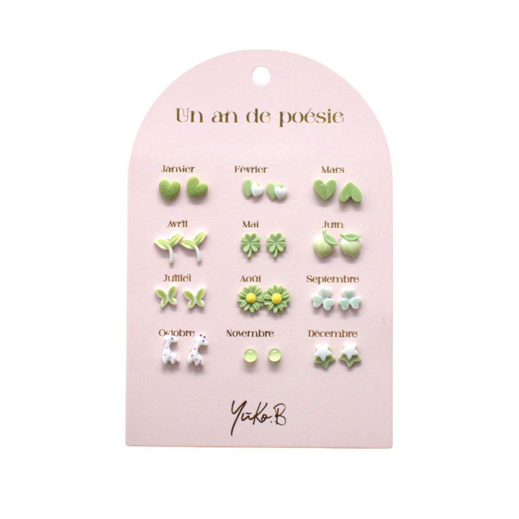 Kauniit keraamiset korvakorut vuoden jokaiselle kuukaudelle,