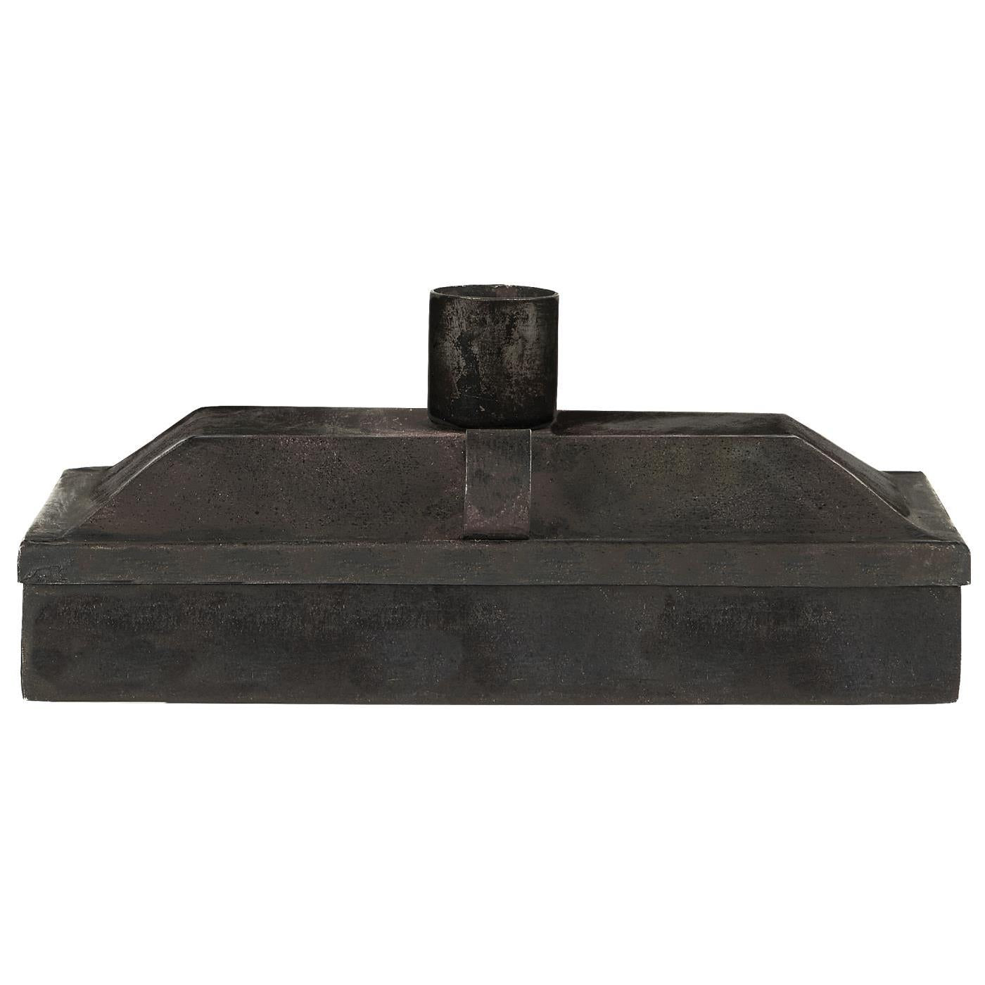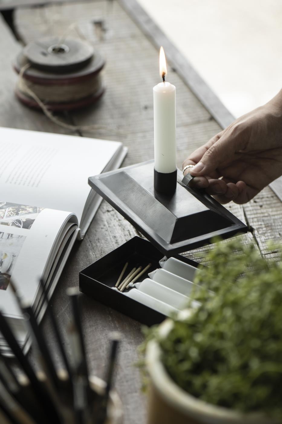 Kaunis rustiikkinen kynttilänjalka avattavalla kannella.