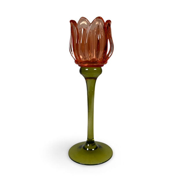 Elegantti ja ajaton tulppaani kynttilänjalka tuikulle tuo tunnelmallista valoa kotiisi. Lasi korostaa kynttilänliekin kauneutta ja sopii monenlaiseen sisustukseen.