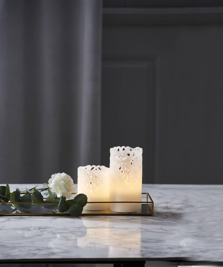 Luo tunnelmaa kauniilla pitsikuvioisella led-kynttilällä sisustukseesi.