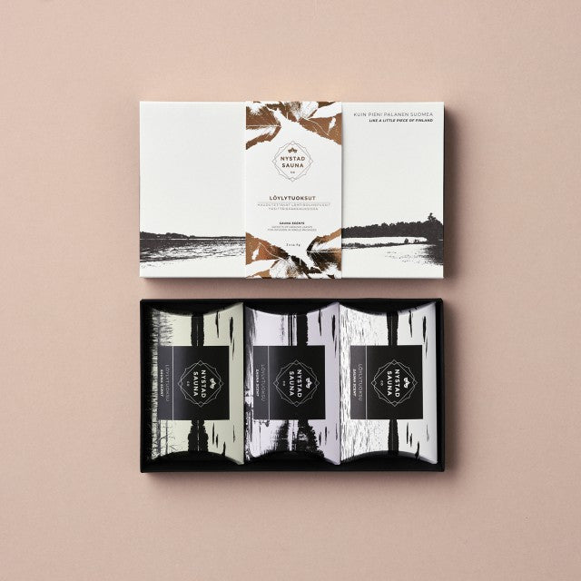 - lahjapakkaus sisältää 3 tuoksua: koivu, koivu&piparminttu ja koivu&laventeli