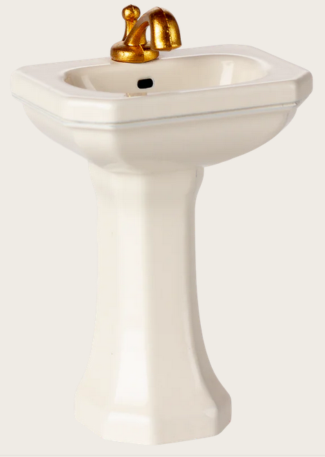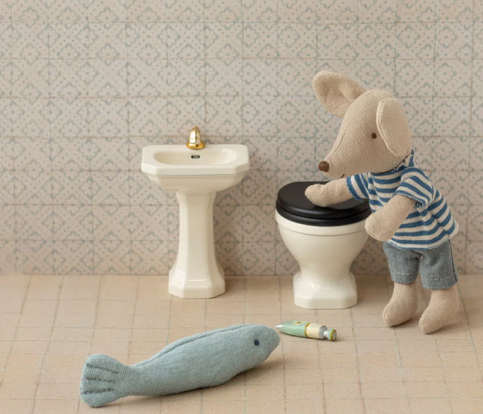 Mailegin pikkusiskon tai pikkuveljen kylpyhuoneeseen täydellinen pesuallas hanalla.