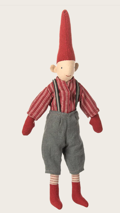 Maileg tonttupoika 31cm henkseli housuissa ja raitapaidassa