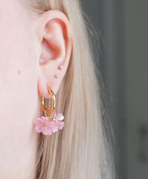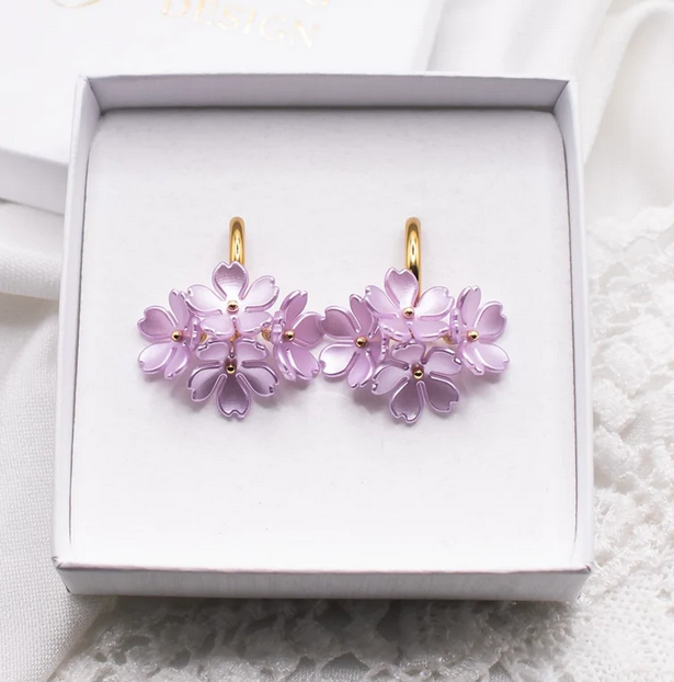 Upeat kimppumaiset korvakorut, joissa on neljä helmiäishohtoista kukkaa.
