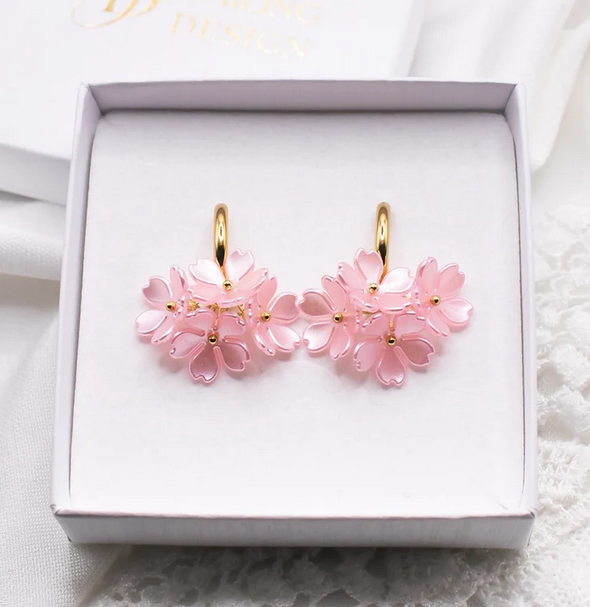 Ihanat kimppumaiset korvakorut, joissa on neljä helmiäishohtoista kukkaa.