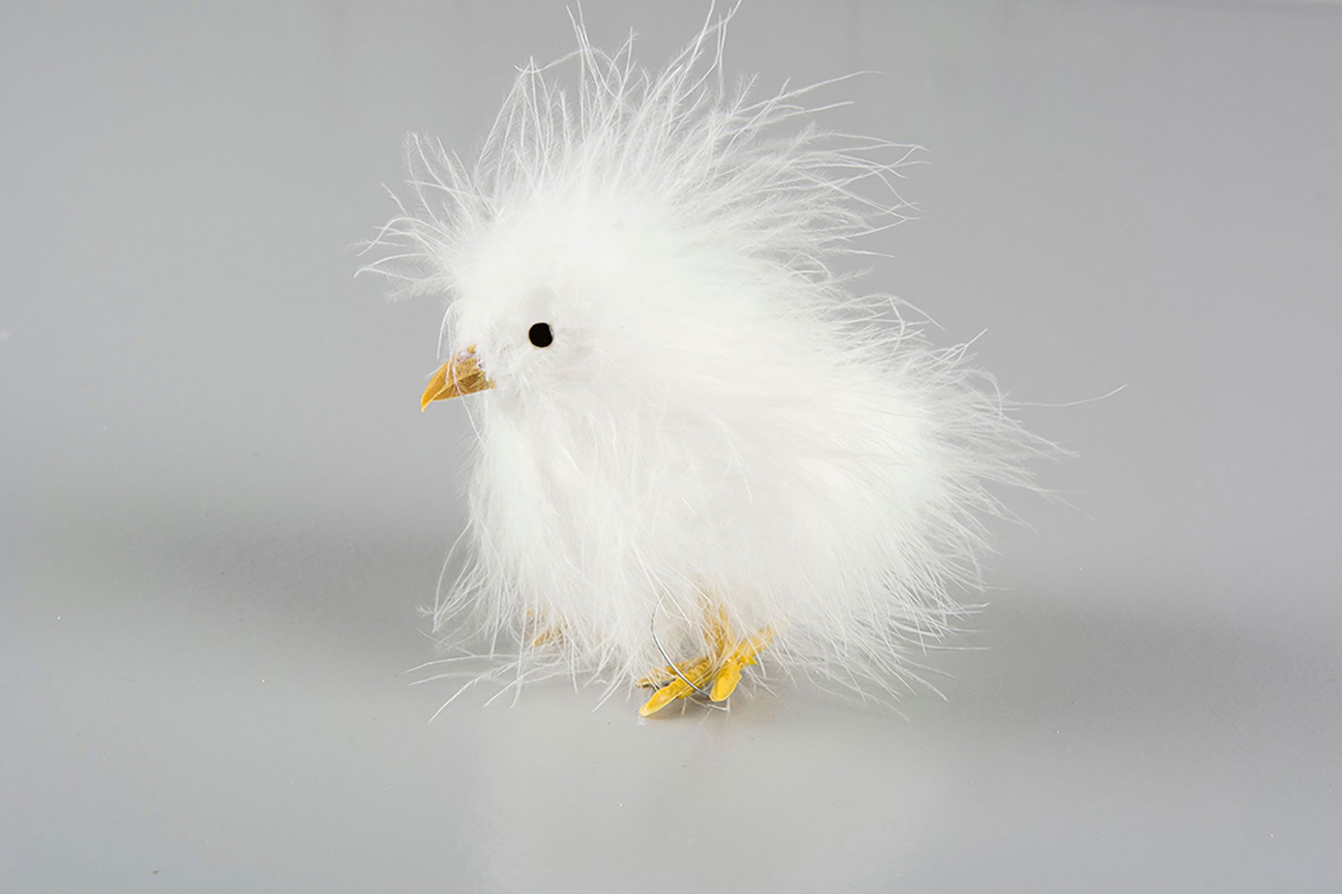 Hurmaava valkoinen pääsiäistipu aidoilla höyhenillä.