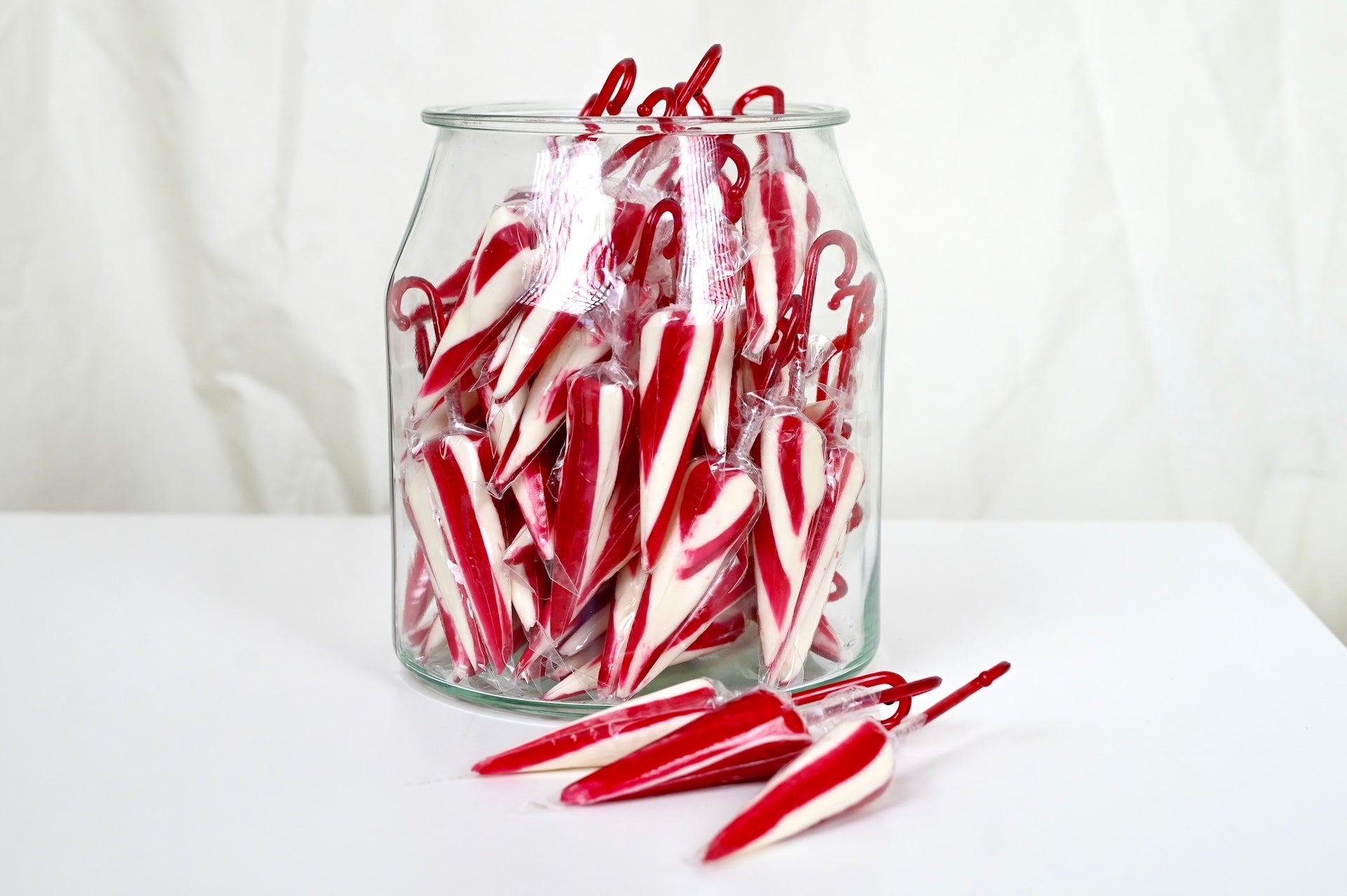 Klassinen sateenvarjonmallinen polkakarkkitikkari.