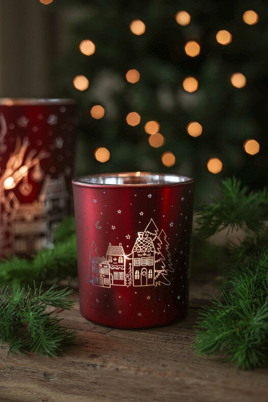 Tuikkulyhty Talvikylä punainen 7x8cm Majas Cottage